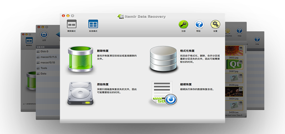 这是一个专业的数据恢复软件,支持苹果操作系统和微软操作系统,能恢复因为删除、格式化、重新分区、软件错误等原因丢失的文件,支持硬盘、SD卡、U盘、手机存储卡、移动硬盘等设备。